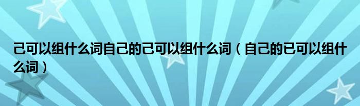 大家好,小晋来为大家解答以下问题,关于己可以组什么词自己的己可以组什么词,自己的已可以组什么词很多人还不知道,今天让我们一起来看看吧!