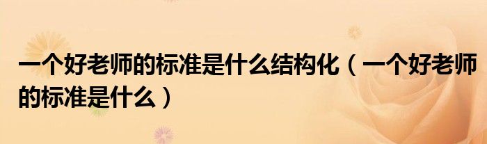 关于一个好老师的标准是什么结构化,一个好老师的标准是什么这个很多人还不知道,今天菲菲来为大家解答以上的问题,现在让我们一起来看看吧!