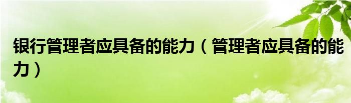 关于银行管理者应具备的能力,管理者应具备的能力这个很多人还不知道,今天菲菲来为大家解答以上的问题,现在让我们一起来看看吧!