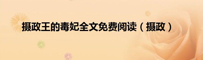 关于摄政王的毒妃全文免费阅读,摄政这个很多人还不知道,今天菲菲来为大家解答以上的问题,现在让我们一起来看看吧!