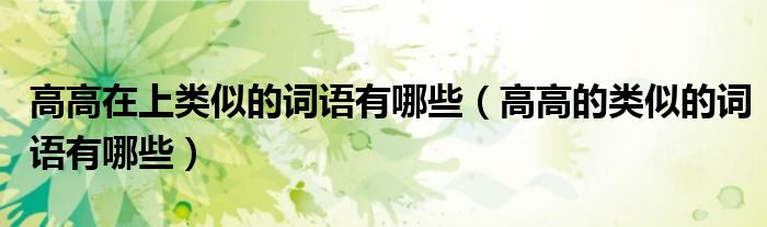 大家好,小晋来为大家解答以下问题,关于高高在上类似的词语有哪些,高高的类似的词语有哪些很多人还不知道,今天让我们一起来看看吧!