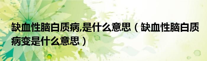 关于缺血性脑白质病,是什么意思,缺血性脑白质病变是什么意思这个很多人还不知道,今天菲菲来为大家解答以上的问题,现在让我们一起来看看吧!