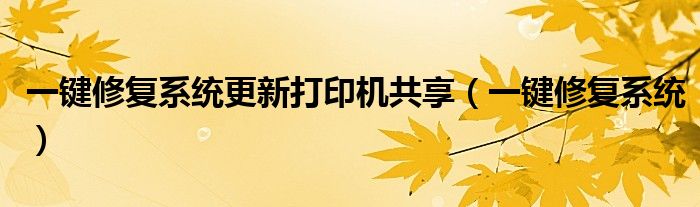 关于一键修复系统更新打印机共享,一键修复系统这个很多人还不知道,今天菲菲来为大家解答以上的问题,现在让我们一起来看看吧!