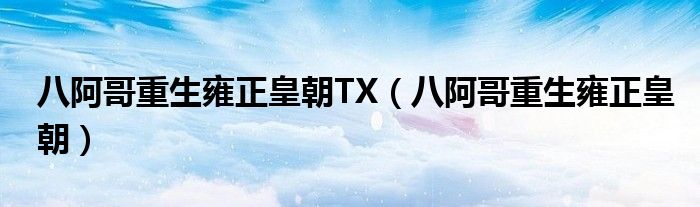 大家好,小晋来为大家解答以下问题,关于八阿哥重生雍正皇朝TX,八阿哥重生雍正皇朝很多人还不知道,今天让我们一起来看看吧!