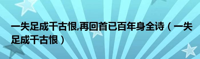 2、’” 清代魏子安的《花月痕》: “一失足成千古恨,再回头已百年身。