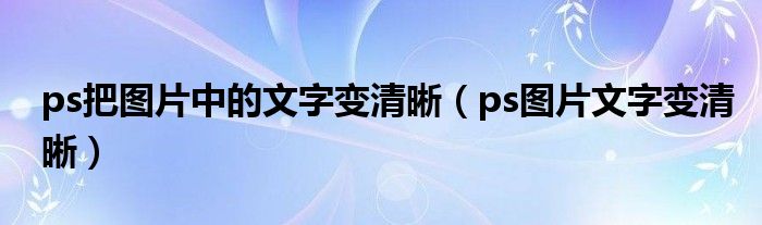 关于ps把图片中的文字变清晰,ps图片文字变清晰这个很多人还不知道,今天菲菲来为大家解答以上的问题,现在让我们一起来看看吧!