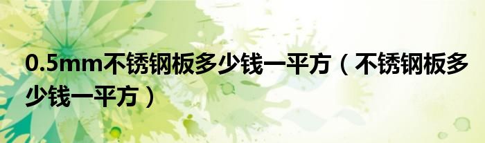 关于0.5mm不锈钢板多少钱一平方,不锈钢板多少钱一平方这个很多人还不知道,今天菲菲来为大家解答以上的问题,现在让我们一起来看看吧!