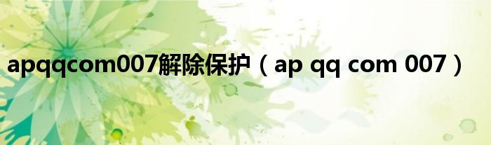 关于apqqcom007解除保护,ap qq com 007这个很多人还不知道,今天菲菲来为大家解答以上的问题,现在让我们一起来看看吧!