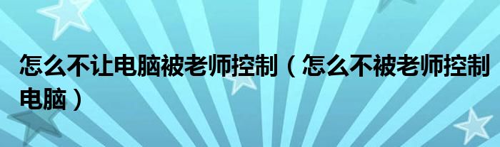 关于怎么不让电脑被老师控制,怎么不被老师控制电脑这个很多人还不知道,今天菲菲来为大家解答以上的问题,现在让我们一起来看看吧!