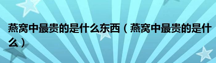 关于燕窝中最贵的是什么东西,燕窝中最贵的是什么这个很多人还不知道,今天菲菲来为大家解答以上的问题,现在让我们一起来看看吧!