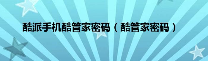 酷派手机酷管家密码(酷管家密码)