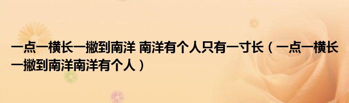 关于一点一横长一撇到南洋 南洋有个人只有一寸长,一点一横长一撇到南洋南洋有个人这个很多人还不知道,今天菲菲来为大家解答以上的问题,现在让我们一起来看看吧!