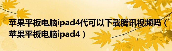 大家好,小飞来为大家解答以上问题,苹果平板电脑ipad4代可以下载腾讯视频吗,苹果平板电脑ipad4很多人还不知道,现在让我们一起来看看吧!