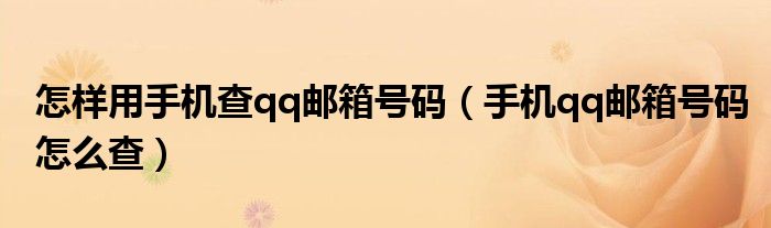 大家好,小晋来为大家解答以下问题,关于怎样用手机查qq邮箱号码,手机qq邮箱号码怎么查很多人还不知道,今天让我们一起来看看吧!