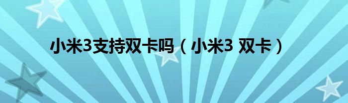 大家好,雨雨来为大家解答以上问题,小米3支持双卡吗,小米3 双卡很多人还不知道,现在让我们一起来看看吧!