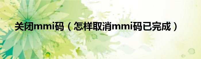 大家好,小晋来为大家解答以下问题,关于关闭mmi码,怎样取消mmi码已完成很多人还不知道,今天让我们一起来看看吧!