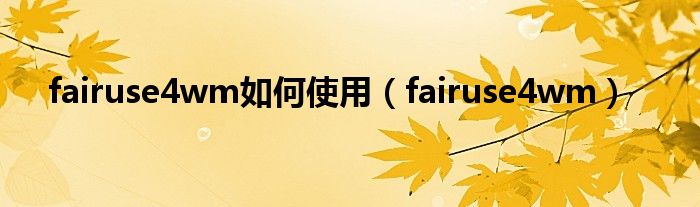 fairuse4wm如何使用,fairuse4wm这个很多人还不知道,小飞来为大家解答以上的问题。现在让我们一起来看看吧!