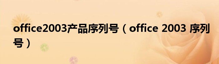大家好,雨雨来为大家解答以上问题,office2003产品序列号,office 2003 序列号很多人还不知道,现在让我们一起来看看吧!