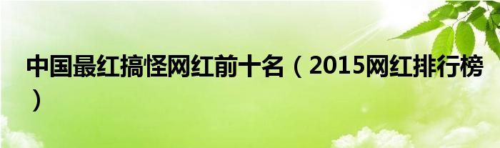 大家好,雨雨来为大家解答以上问题,中国最红搞怪网红前十名,2015网红排行榜很多人还不知道,现在让我们一起来看看吧!