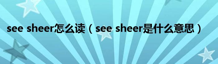 大家好,小晋来为大家解答以下问题,关于see sheer怎么读,see sheer是什么意思很多人还不知道,今天让我们一起来看看吧!