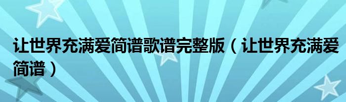 关于让世界充满爱简谱歌谱完整版,让世界充满爱简谱这个很多人还不知道,今天菲菲来为大家解答以上的问题,现在让我们一起来看看吧!