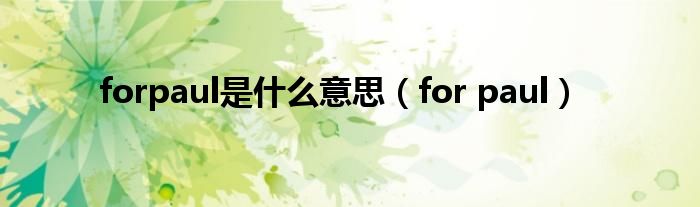 大家好,雨雨来为大家解答以上问题,forpaul是什么意思,for paul很多人还不知道,现在让我们一起来看看吧!