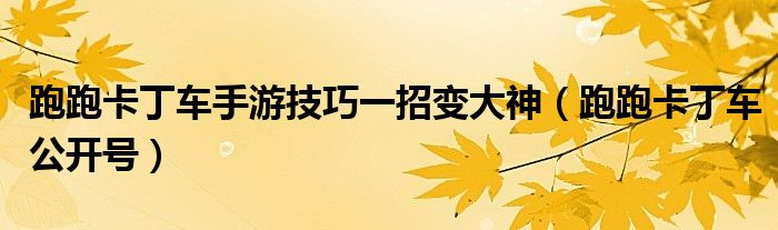 跑跑卡丁车手游技巧一招变大神,跑跑卡丁车公开号这个很多人还不知道,小飞来为大家解答以上的问题。现在让我们一起来看看吧!