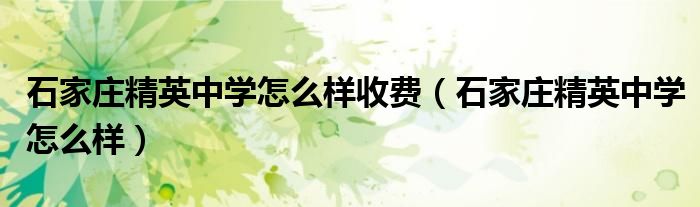 关于石家庄精英中学怎么样收费,石家庄精英中学怎么样这个很多人还不知道,今天菲菲来为大家解答以上的问题,现在让我们一起来看看吧!