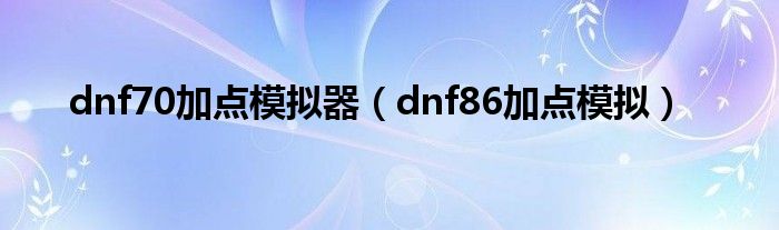 大家好,雨雨来为大家解答以上问题,dnf70加点模拟器,dnf86加点模拟很多人还不知道,现在让我们一起来看看吧!
