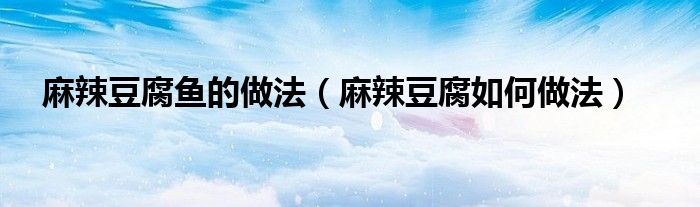大家好,雨雨来为大家解答以上问题,麻辣豆腐鱼的做法,麻辣豆腐如何做法很多人还不知道,现在让我们一起来看看吧!