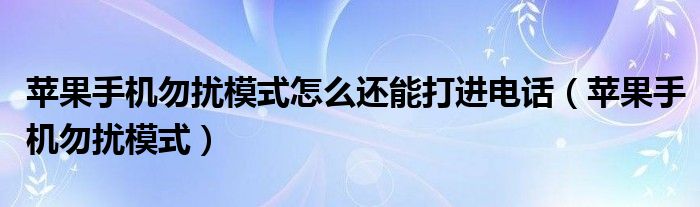 大家好,小晋来为大家解答以下问题,关于苹果手机勿扰模式怎么还能打进电话,苹果手机勿扰模式很多人还不知道,今天让我们一起来看看吧!