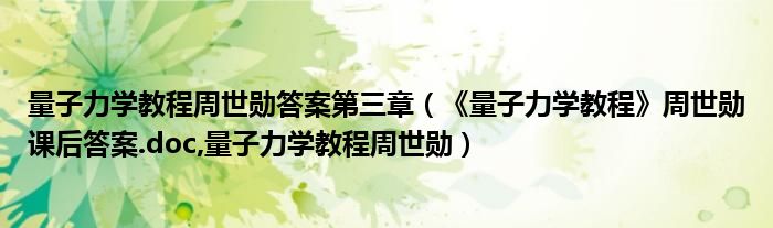 大家好,小常来为大家解答以上问题。量子力学教程周世勋答案第三章,《量子力学教程》周世勋课后答案.doc,量子力学教程周世勋很多人还不知道,现在让我们一起来看看吧!