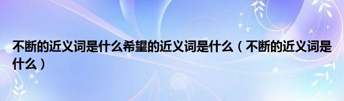 大家好,小晋来为大家解答以下问题,关于不断的近义词是什么希望的近义词是什么,不断的近义词是什么很多人还不知道,今天让我们一起来看看吧!