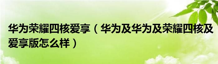 大家好,小常来为大家解答以上问题。华为荣耀四核爱享,华为及华为及荣耀四核及爱享版怎么样很多人还不知道,现在让我们一起来看看吧!