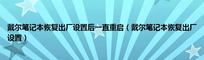 大家好,小晋来为大家解答以下问题,关于戴尔笔记本恢复出厂设置后一直重启,戴尔笔记本恢复出厂设置很多人还不知道,今天让我们一起来看看吧!
