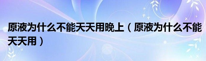 大家好,小晋来为大家解答以下问题,关于原液为什么不能天天用晚上,原液为什么不能天天用很多人还不知道,今天让我们一起来看看吧!