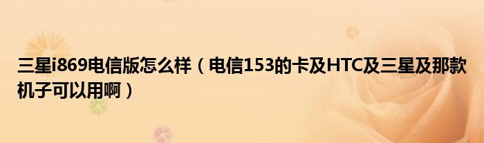 大家好,小常来为大家解答以上问题。三星i869电信版怎么样,电信153的卡及HTC及三星及那款机子可以用啊很多人还不知道,现在让我们一起来看看吧!