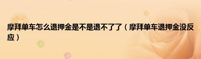 大家好,小晋来为大家解答以下问题,关于摩拜单车怎么退押金是不是退不了了,摩拜单车退押金没反应很多人还不知道,今天让我们一起来看看吧!