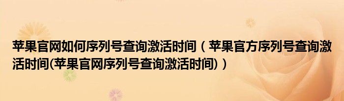 一.苹果官网怎么序列号查询激活时间: