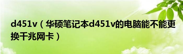 1,华硕笔记本d451v的电脑能不能更换千兆网卡:华硕笔记本d451v的有线网卡是焊在主板上的,不支持更换的,若是想使用千兆网卡,建议单独购买外接的网卡。