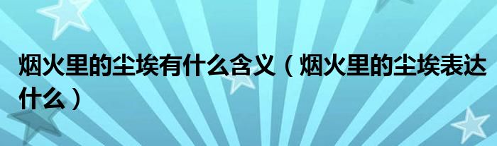 大家好,小晋来为大家解答以下问题,关于烟火里的尘埃有什么含义,烟火里的尘埃表达什么很多人还不知道,今天让我们一起来看看吧!