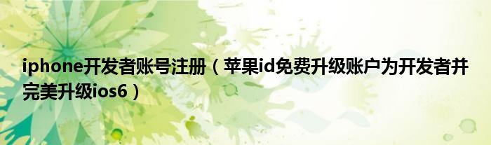 大家好,今天小悦来为大家解答以上问题。iphone开发者账号注册,苹果id免费升级账户为开发者并完美升级ios6很多人还不知道,现在让我们一起来看看吧!