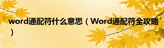 大家好,今天小悦来为大家解答以上问题。word通配符什么意思,Word通配符全攻略很多人还不知道,现在让我们一起来看看吧!