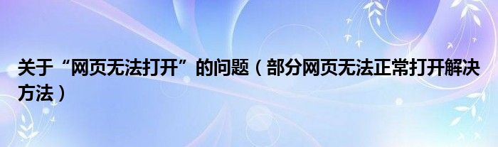 大家好,今天小悦来为大家解答以上问题。关于“网页无法打开”的问题,部分网页无法正常打开解决方法很多人还不知道,现在让我们一起来看看吧!