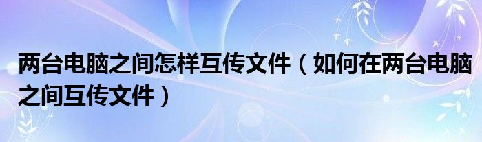 大家好,今天小悦来为大家解答以上问题。两台电脑之间怎样互传文件,如何在两台电脑之间互传文件很多人还不知道,现在让我们一起来看看吧!