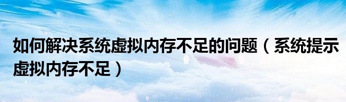 大家好,今天小悦来为大家解答以上问题。如何解决系统虚拟内存不足的问题,系统提示虚拟内存不足很多人还不知道,现在让我们一起来看看吧!