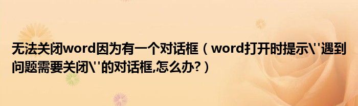 大家好,今天小悦来为大家解答以上问题。无法关闭word因为有一个对话框,word打开时提示"遇到问题需要关闭"的对话框,怎么办?很多人还不知道,现在让我们一起来看看吧!