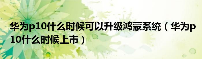 大家好,雨雨来为大家解答以上问题,华为p10什么时候可以升级鸿蒙系统,华为p10什么时候上市很多人还不知道,现在让我们一起来看看吧!