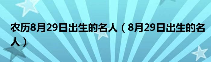 关于农历8月29日出生的名人,8月29日出生的名人这个很多人还不知道,今天菲菲来为大家解答以上的问题,现在让我们一起来看看吧!