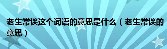 关于老生常谈这个词语的意思是什么,老生常谈的意思这个很多人还不知道,今天菲菲来为大家解答以上的问题,现在让我们一起来看看吧!